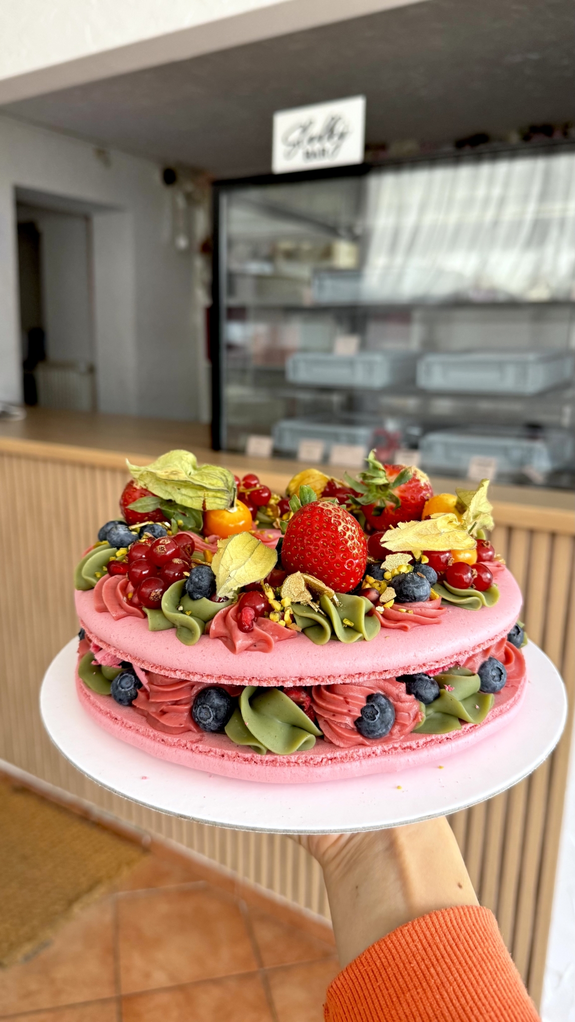 Úžasná makrónková torta, ktorou zabodujete. Ponúkame množstvo príchutí na výber, pričom finálny vzhľad sa vždy odvíja od zvolenej náplne (napr. malinová, prípadne jahodová – ružová makrónka, mojito – zelená, čokoláda – hnedá a pod.). Do makrónkovej torty vždy pridávame rôzne čerstvé ovocie, ktoré dodáva celej tortičke nový rozmer.